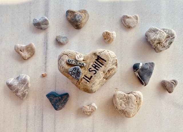 So sah es aus: Meditation in den Sonnenaufgang, Baden im Meer nach dem Frühtraining, Abendtraining am Meer, wähhrend die Sonne hinter dem Berg verschwindet, Abendessen an der Hafenpromenade, WG-Leben auf der Bungalow-Terrasse, gute Gespräche, laut-lachende Runden, Auseinandersetzung mit der Theorie zu Themen des Jahresmottos, Vollmondparty mit Tanz am Steinstrand und viel Gemeinschaft, ein Strand voller Herzen, der Blick in die Weite, Sonne und Wonne, bergauf, bergab, mediterrane Ku?stenwanderungen durch die karge Vegetation der Felsküste und der Berge mit alten knorrigen Oliven- und Wachholderbäumen und dem Blick auf unfassbare Blautöne ganz ohne Photoshop, und wo immer man sich befand, war eine Katze im Bild.